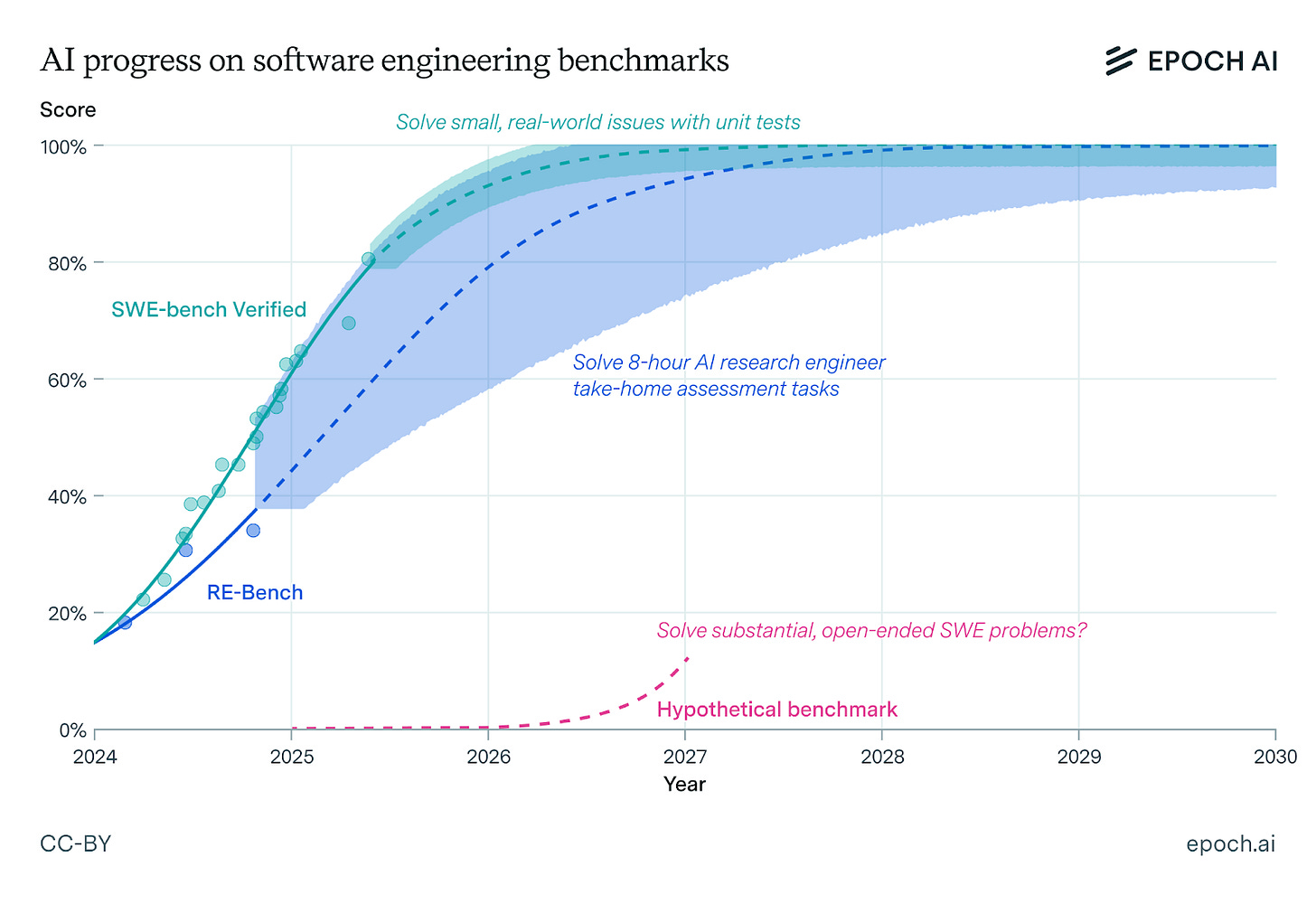 - Software engineering: AI is already transforming software engineering through code assistants and question-answering. On current trends, 2030 AI will autonomously fix issues, implement features, and solve hours-long defined problems.