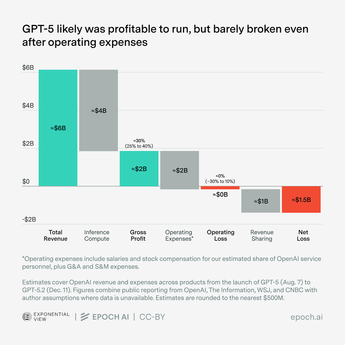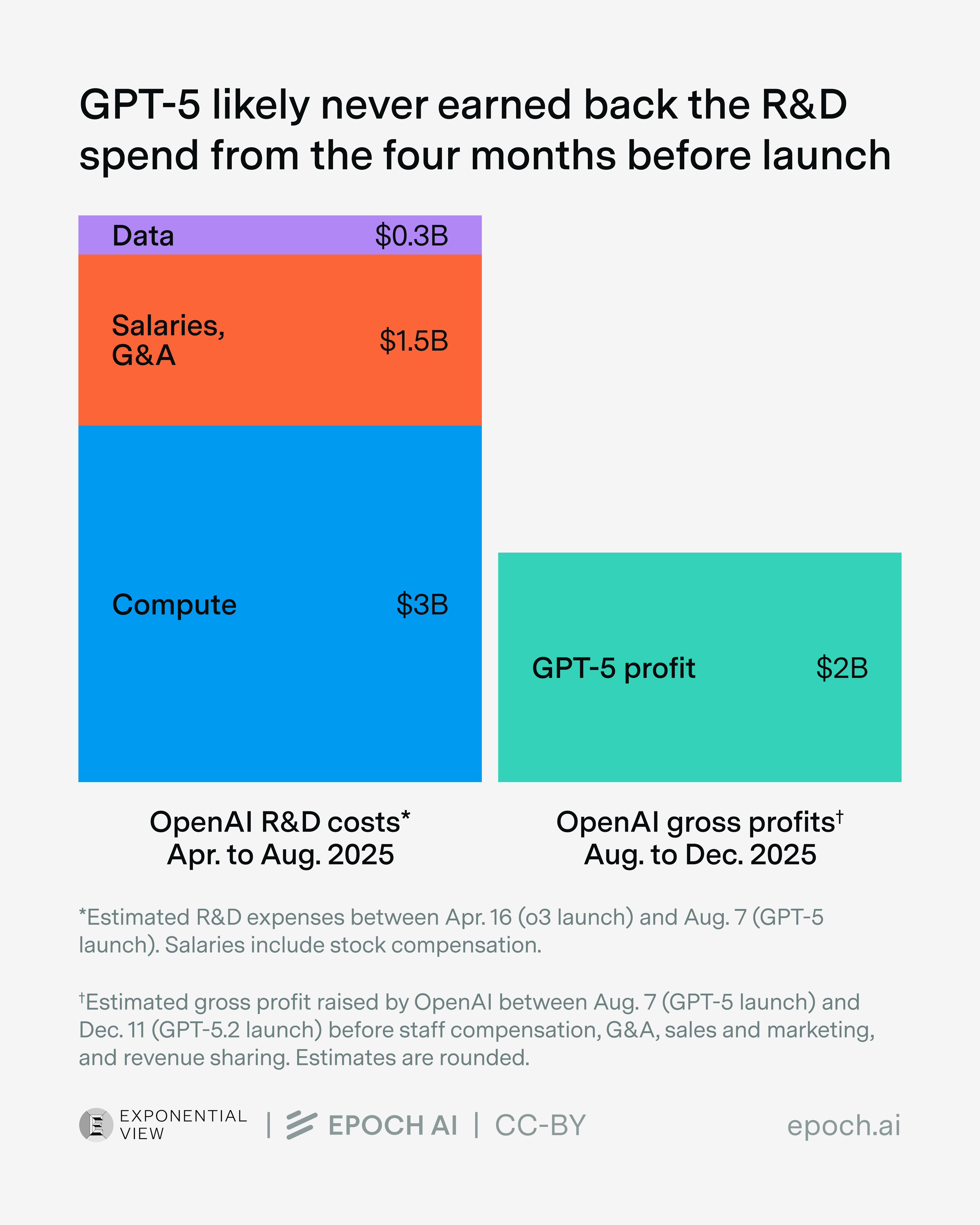 So to figure out the answer, let’s go back to the GPT-5 bundle. We’ve already figured out its gross profits to be around $2 billion. So how do these compare to its R&D costs?