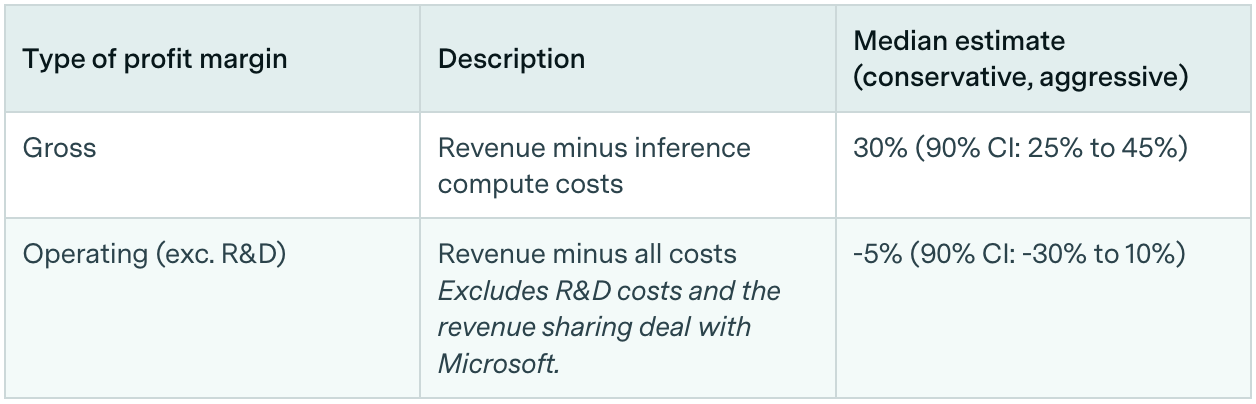 In comparison, Anthropic projected in mid-December a gross margin around 40%, suggesting gross margins in the 30-40% range might be representative of the industry.