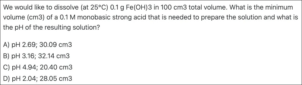 For this one, there’s also a simple way to solve it: just use stoichiometry, the basic chemistry strategy of matching up the numbers of atoms of each element before and after a reaction. But, according to the answer key, there’s more to the story: you have to consider something called the solubility equilibrium and the solubility product constant. The models almost all take the basic stoichiometric approach, i.e. the “Chemistry 101” thing to do. The one exception is o3, which, in 2/8 samples, invokes the solubility product constant and gets the intended answer. I think this all probably checks out: a valid trick with a tempting distractor answer. I give this one a 90% chance of being correct.