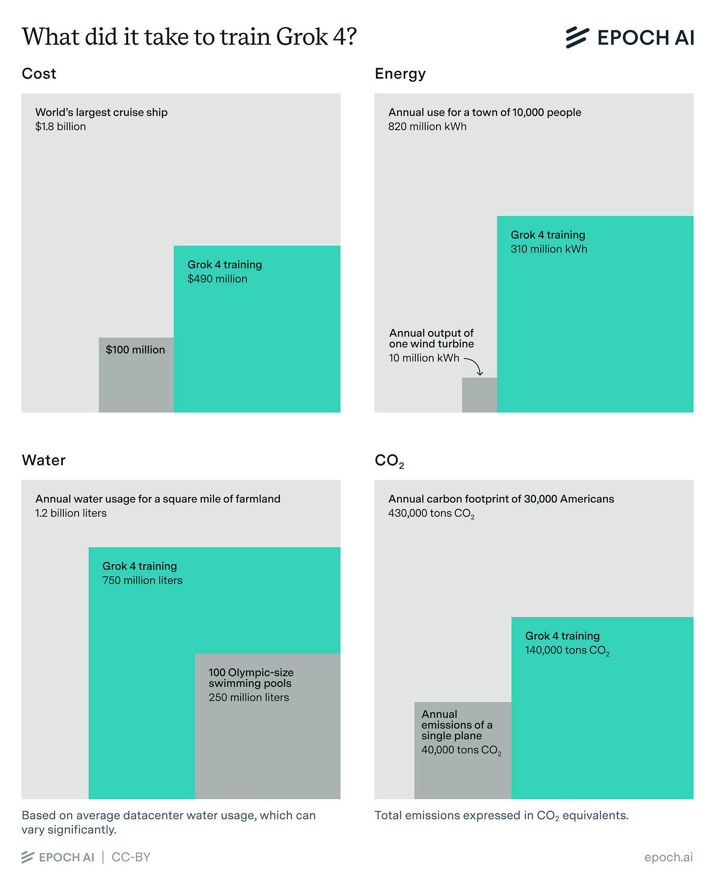 To support this much power, the supercomputer used to train Grok 4 had to be cooled with the equivalent of 300 Olympic-sized swimming pools.