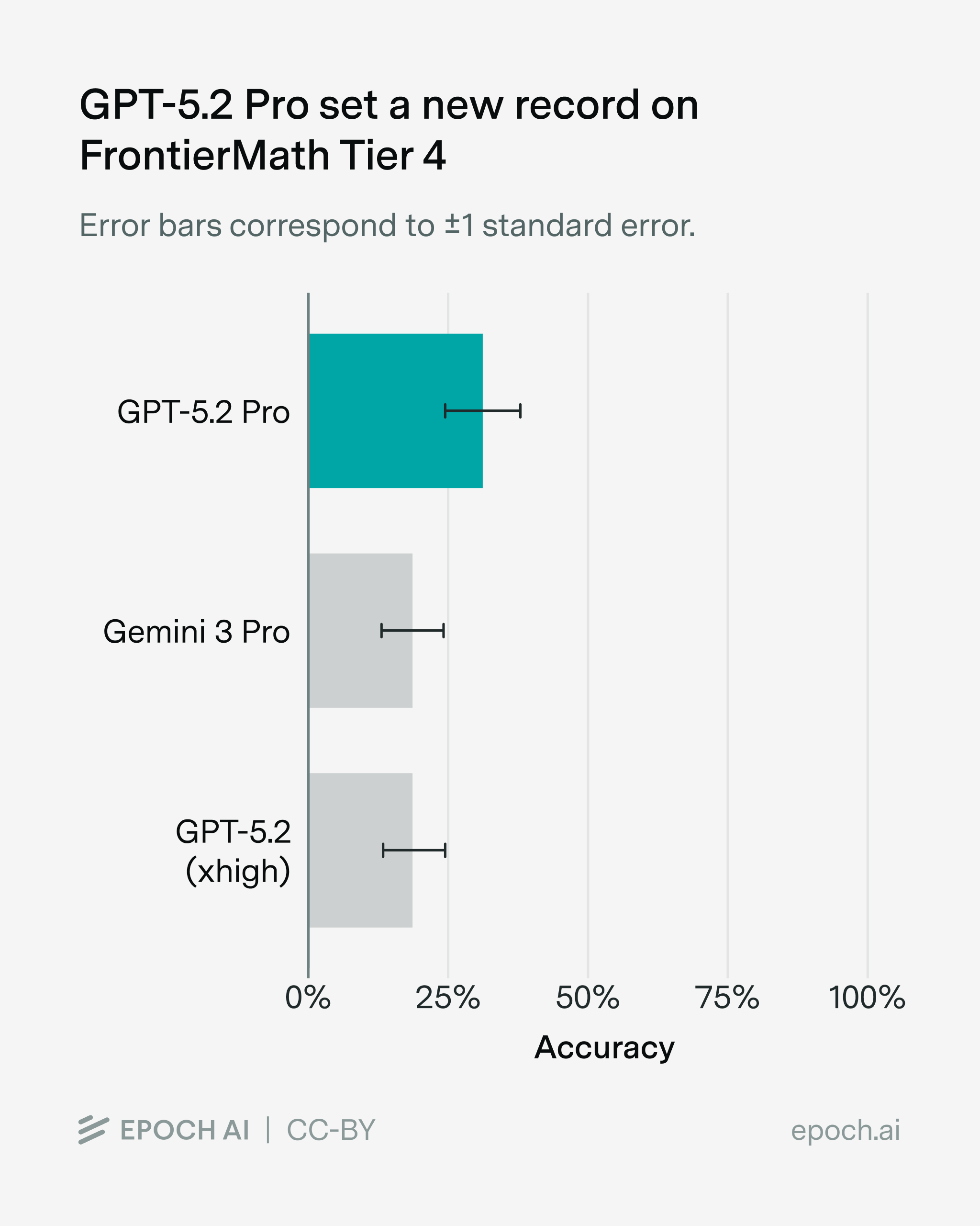 GPT-5.2 Pro (manual run) scored 31%, a substantial jump over the previous high score of 19%.
