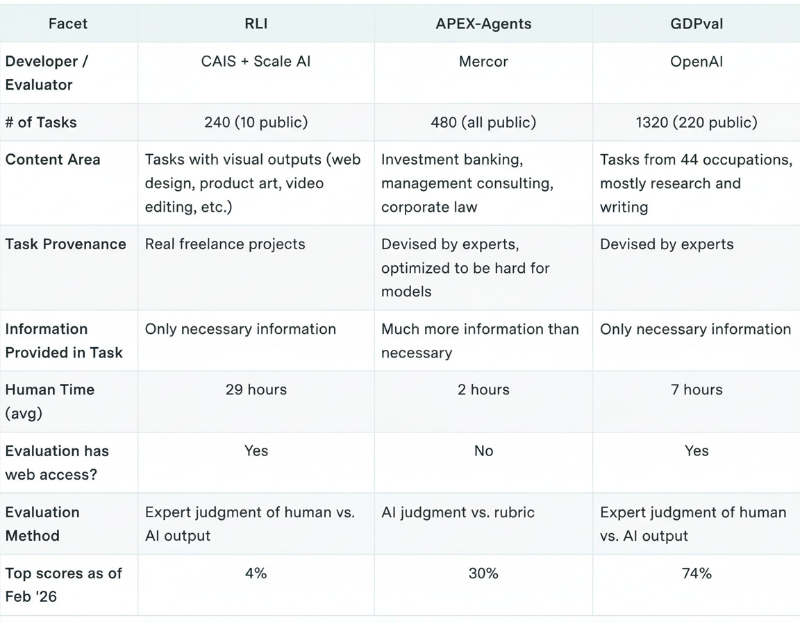 Can AI do real digital work? We reviewed three benchmarks to find out: Remote Labor Index (RLI), GDPval, and APEX-Agents.